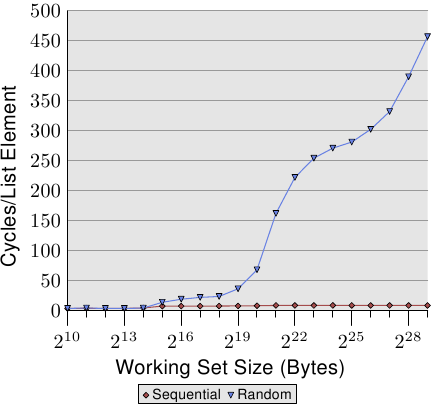 연결 리스트의 이론적 장점은 현대 하드웨어에서 상쇄된다. O(1) 삽입의 장점보다 캐시 미스의 비용이 클 때가 많다. Stroustrup과 Drepper의 실험이 이를 증명한다.