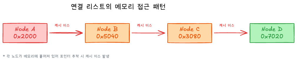 | 순차 순회 | O(n), 캐시 친화적 | O(n), 캐시 비친화적 |