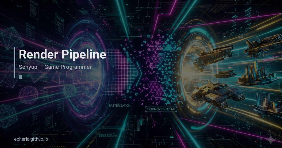 - 렌더 파이프라인은 3D 데이터가 2D 화면 픽셀로 변환되는 전체 과정이며, Application(CPU) → Geometry → Rasterization → Pixel Processing → Output Merger 단계를 거친다
